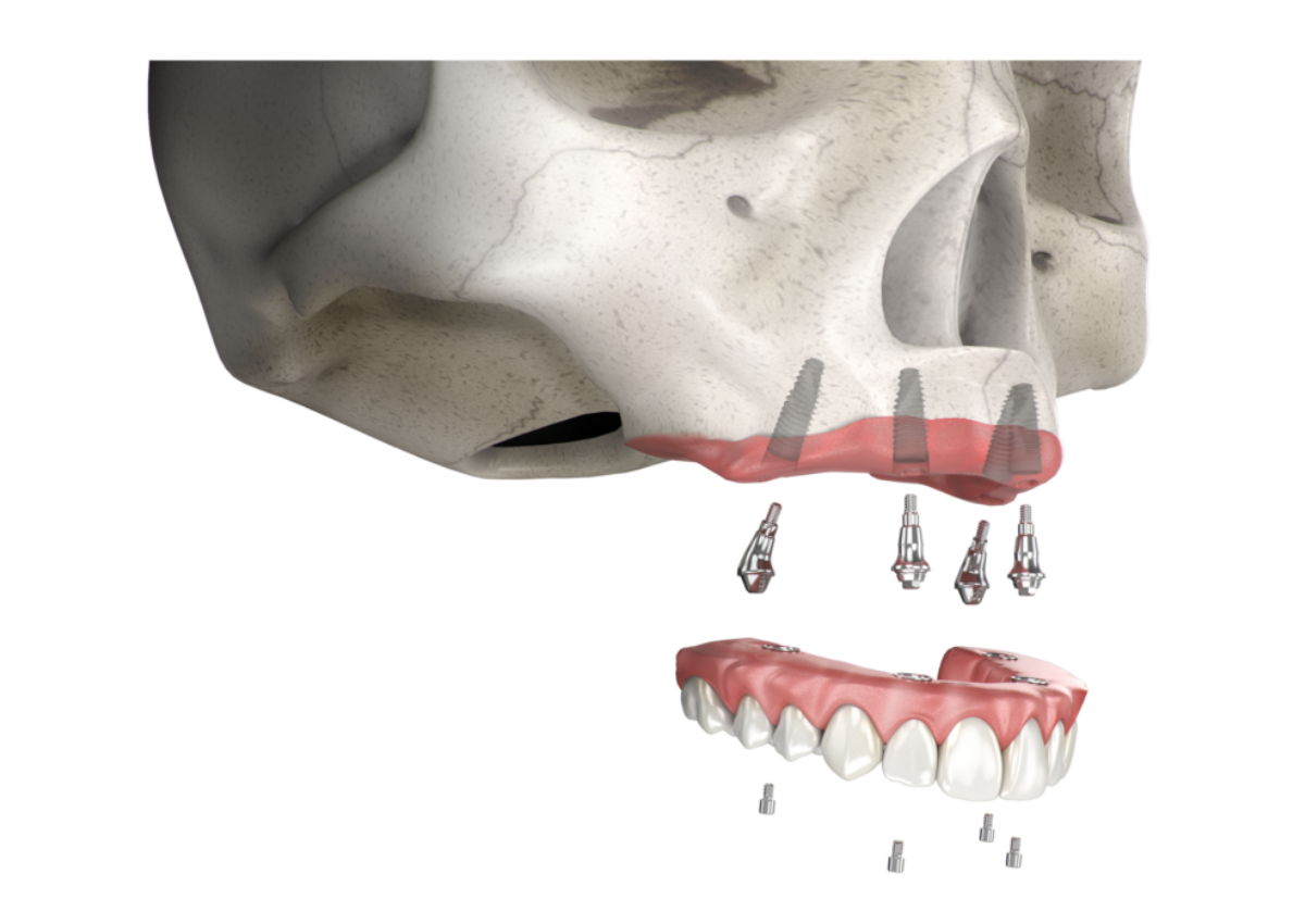 Este procedimiento aplica para personas con pérdida total o parcial de dientes que requieren ser extraídos, y que quieren tener una prótesis fija. Se colocan de 4 o más implantes según la necesidad de cada paciente y de acuerdo a la cantidad y calidad ósea que presente. Este mismo día se adapta una prótesis temporal fija la cual durará puesta en el paciente 3 meses, dándole lugar a una adecuada adaptación de tejidos blandos y oseointegración.